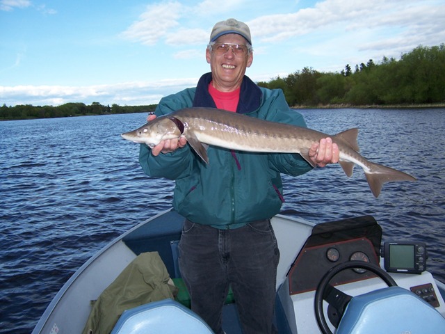Fishing continues to be good on the river with enough of the 13″ to 16″ eaters to keep most folks happy. Friday, Gerry and I fished late afternoon for a while and found out that there was a better bite a little earlier in the afternoon. We managed to catch six walleyes and a sauger plus we each caught a sturgeon. With the river current quite strong the sturgeon, even though small, put up quite a fight.