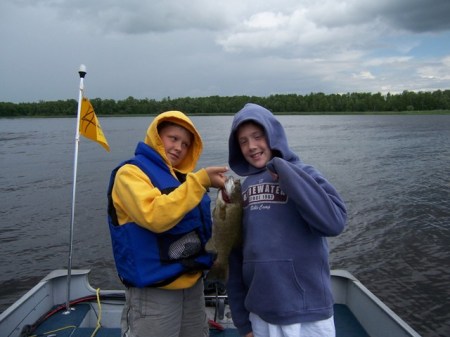 The weather almost cooperated. It was windy with a few rain showers, but really quite a good day. Because of the wind most boats elected to fish the river and I was no exception. I had two 10 year old boys with me, Carl Pederson and Levi Marken. We came back to town to launch the boat and then went down river to Senske Creek. We anchored up for awhile; trolled a little for pike and cast a few baits for whatever might want to grab them. We ended up catching seven walleyes and kept six of them. Four were nice eaters; two were small but were hooked bad. Levi caught and released a small 24″ sturgeon and Carl caught a nice 15″ smallmouth casting a spinner bait. When all the boats were in, I think we did as well or better than most. Fishing has been good in front of the Lighthouse Gap and I’m sure all the boats would have caught more fish had we been able to fish the Lake.