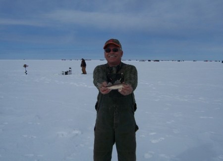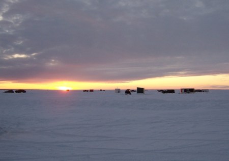 Tom is staying through early next week; taking a couple days vacation and is having some family coming up to fish with him. Saturday morning his group left for the lake; the ice road out of Adrian’s is now 14 miles past Pine Island. When I arrived, late morning, they had caught 7 walleyes and saugers and the bite had slowed; not much for nine guys. After an hour we moved down the road a mile or so and caught about a half dozen small saugers; nothing to keep, but one got the first fish money. George arrived and the group moved back to where we first fished. George caught a nice 22″ walleye; I caught a 20″ walleye and one of the guys caught a nice sauger. Shortly after 3:00 p.m. Tom’s group packed it in and headed for the river near town. They caught two big walleyes; a 27″ and a 29″ and three eaters. George and I fished another hour and did nothing. On our way in we stopped and fished the Gap for an hour and George caught one eater. The days fishing wasn’t very good for the time we put in. Tom’s group was happy with what they did in the river and they ended up with enough for a fish fry.