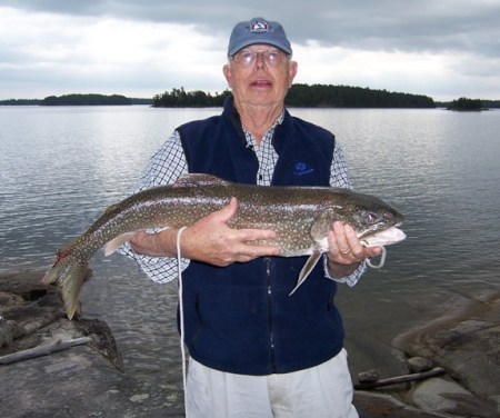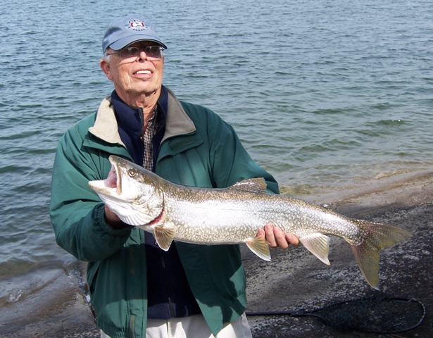 Two of the Bosch boys, Tom & Jim, came up from Michigan and Jim’s dad, Bill, came from Denver for a weekend of trout fishing in Whitefish Bay. Jonathan brought one of his daughters, Britta, to stay with grandma Diane while he went with us. George and I were the two locals that witnessed the early spring and were really concerned about the lateness of the trip. We drove to Sioux Narrow on Friday afternoon; fished Saturday, Sunday and half a day on Monday. Because I didn’t catch much of a trout, I won’t go into any details about who caught what and how many, but “WE” caught 35 lake trout over the three days. George caught the big fish, 36″, but there is a little controversy; Tom caught and released one that he says was a tad bigger than George’s and George says it was a tad smaller. The trout we caught were from 24″ -32-1/2″ and quite a few were from 29″ – 32″. Monday was a good day; we only needed one for our possession limit to bring home and after catching that one early we caught and released fifteen. We also caught a few pike; some were in the mid 30″ range; that’s in the slot and were released. Every once in a while Jim, Tom and Jonathan would go and cast some plugs for smallmouth bass and northern pike. Good weather, good company, good fishing; it was a great trip.