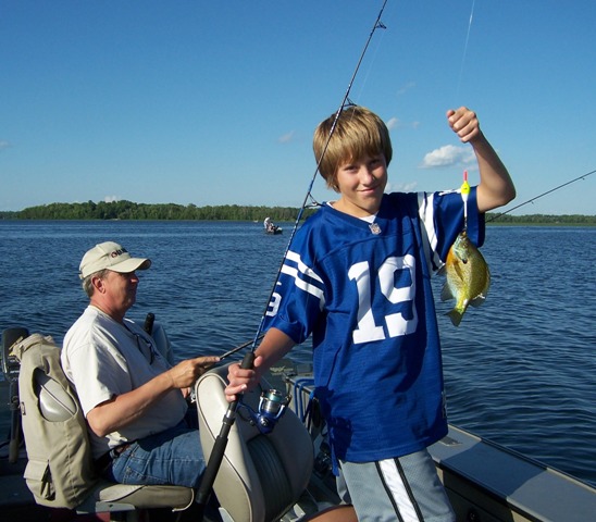 On a beautiful Friday, Matt and I went to Bemidji. After a nice lunch and a couple of stops we met Terry for an evening of bobber fishing for bluegills. The first choice was Gull Lake which has been spotty this year, but has had a couple of good reports lately. We were fishing a little before 5:00 p.m. and for the first hour or so we were sure that we had picked the wrong lake. After trying five or six spots we finally found some and for the next couple of hours the action was good. We kept ten nice bluegills, all 9″-10″ and released a bunch, both big and little. Matt is working on a list of Minnesota species and added bluegill, pumpkinseed and bullhead to it.