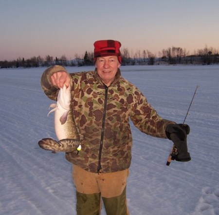 We have finally got some nice weather to melt some of our snow. Tuesday, the temperature was in the mid forties and water was running down the street. With the time change there is now extra daylight to fish the river after dinner. Tuesday, I did that and walked to the middle of the river by the airport. Neighbors Jim and Ralph had the same thought in mind and the three of us gave it a good try for almost two hours. Ralph caught a big burbot; we haven’t seen many that size in recent years. Jim and I each caught little saugers. This morning I tried the same spot for an hour and a half and didn’t have a bite.