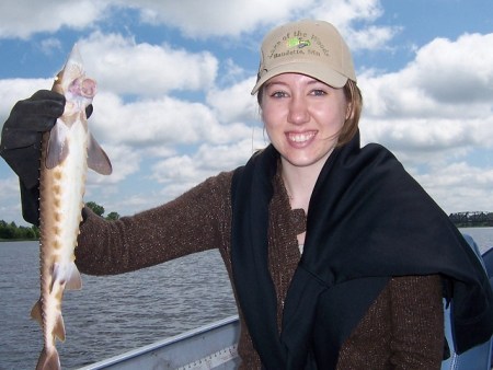 On the day that most of them arrived, storms rolled through the area and some much anticipated “good fishing” didn’t happen. The water got riled and that seems to shut down the bite for a few days. We went to the lake one day; fished Four Mile Bay and the outside of Pine and found only one small sauger. Fished the river one day when it was to windy to go to the lake and a big sucker was all that we could get. Most everybody left on Sunday and Megan and I fished the river for a couple hours before taking her to IFalls to catch a plane and she caught two little sturgeon.