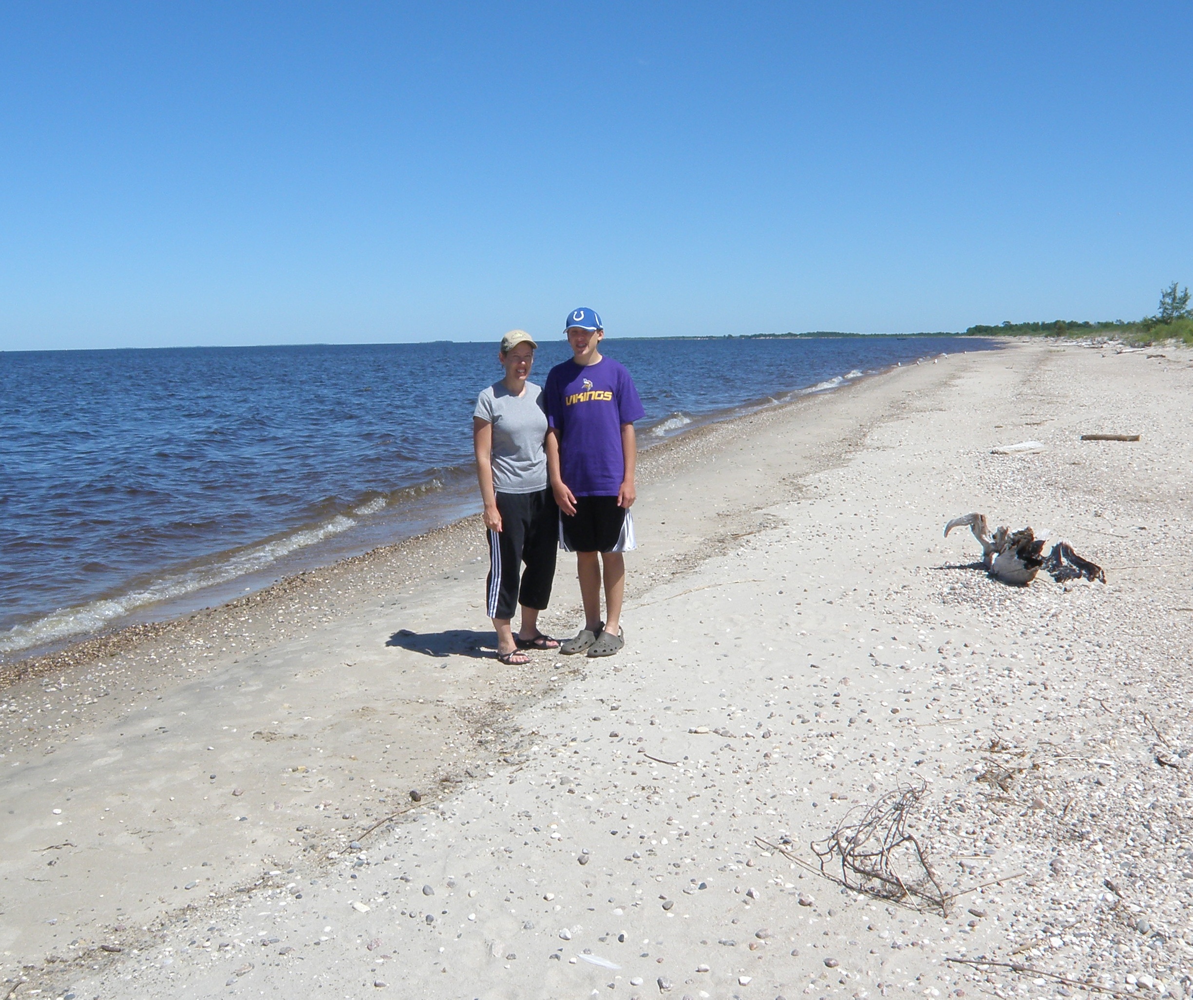 Sunday was the last day that Julie and Matt were to be here and a beautiful day it was. After picking the raspberries and delivering some eggplant to a friend, we put the boat in across from the house and had a nice ride to the lake. We went out in front of the Gap to 28 foot of water; set the downriggers and fished for a little over an hour. We caught five nice walleyes (released a 21″) and three saugers. We went in to Pine Island; had a snack; then headed home for more garden chores.