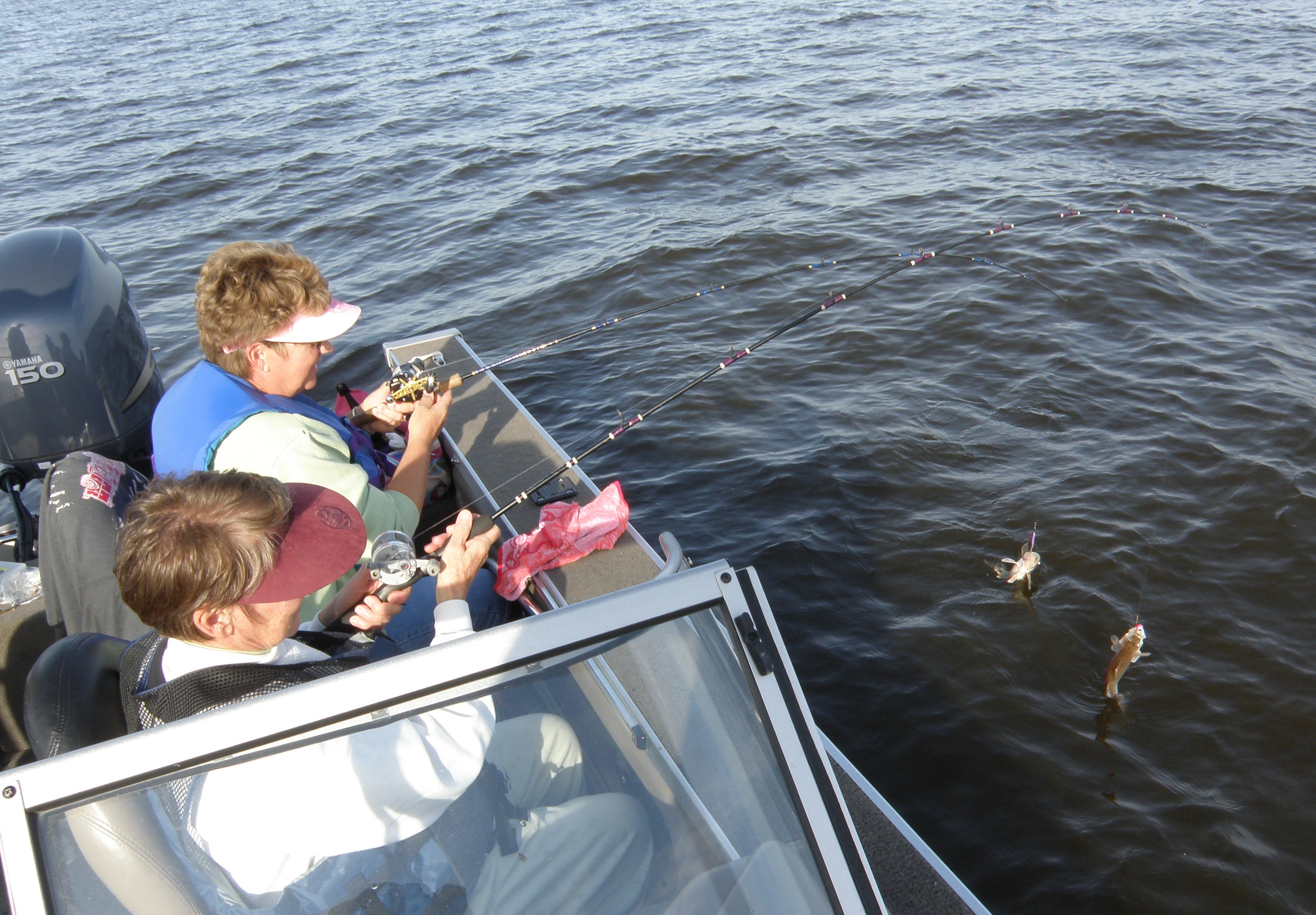 Fishing continues to be excellent on Lake of the Woods out in front of the Gap and Pine Island. With the continued nice weather, it’s a must to go fishing. Monday afternoon Don, Sue, Diane and I took a ride down the river to the Lake, out through the Gap to 24′ and dropped anchor. The fish have moved in closer and hopefully they will come in the river in earnest soon. We fished for less than two hours and the action was non-stop; many times it was two on at a time. The fish were really nice, both walleye and saugers, with some saugers up to 15″. It was mostly a catch and release trip, but we kept enough for a nice meal. It was a great day on the water.