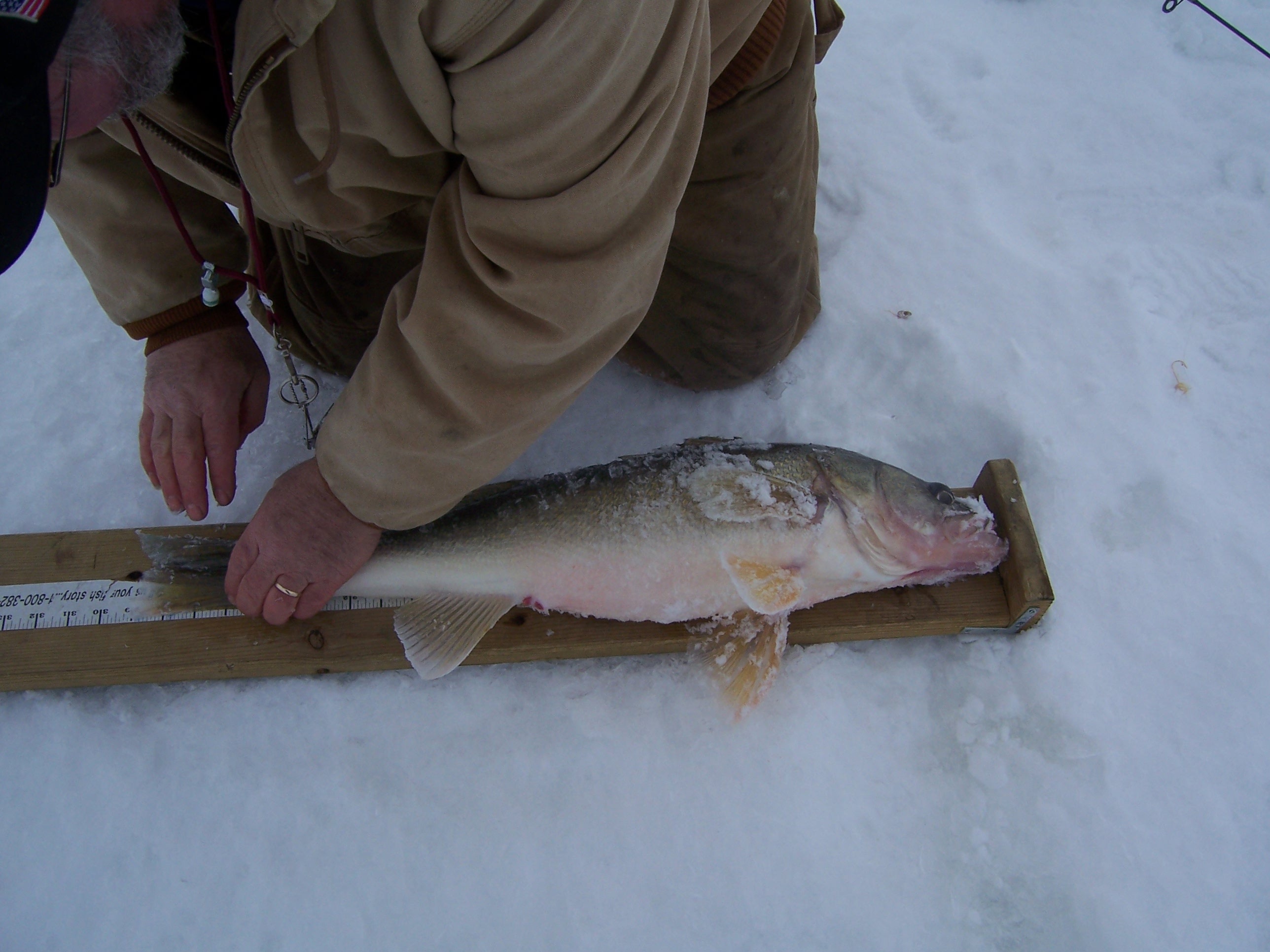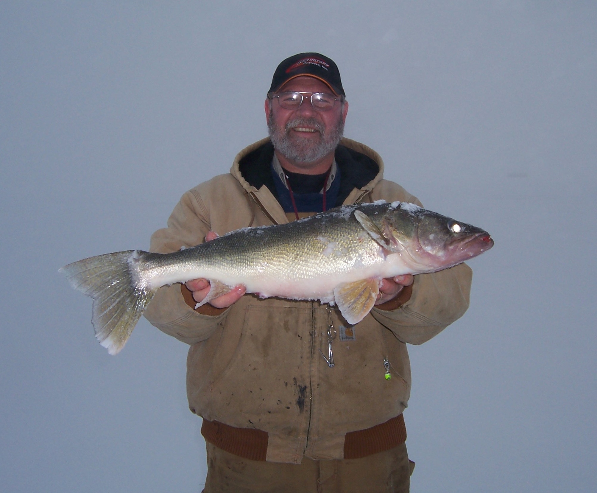 Friday, Tom, Mick and I went to the Lake. We had a good, reliable tip on a spot and it’s a good thing that directions were clear, because it was foggy and seeing where to go was anything but clear. We located the spot, about six miles off Pine Island and began fishing around 11:00 a.m. We fished until about 3:30 and while the bite wasn’t fast, it was good enough to keep us happy. We ended up three short of our limit and caught only one slot fish, but it was a dandy. Tom caught a beautiful 29″ walleye and that makes him the new leader for the largest walleye with the Bosch cold weather test team. He released the fish and said that it was a good thing that it wasn’t an inch longer or it would have cost him to have it mounted. We hurried back to town and went down on the river for the last hour of fishing. The sun had come out, but just before dark the fog rolled in and visibility went to very little. We caught three walleyes and kept two, so we ended up short one for the day. We were all happy, it was a good day.