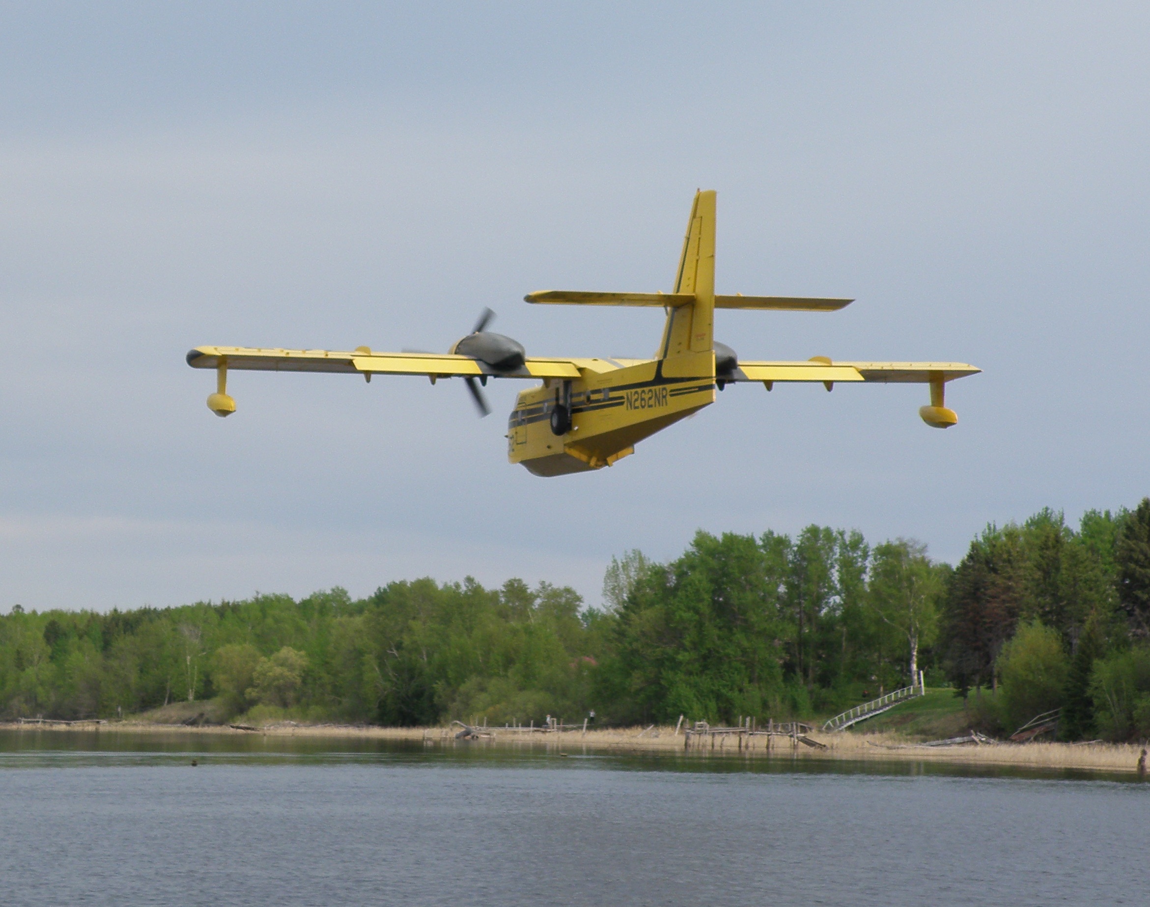 It is very dry and fires are a problem. There have been two fires this spring that they used two CL-15 water planes that are stationed in Bemidji come up here to help put out the fires that are not too far from town. The planes pick up water from the river and it’s really an impressive sight watching them. They carry 1400 gallons of water each time and they make a round about every ten minutes.