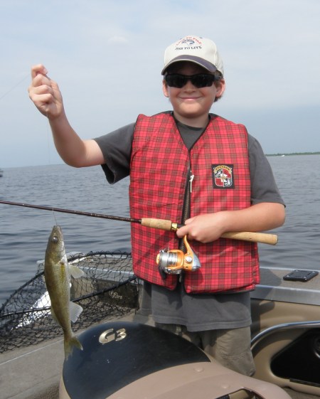 Steve and Scott have been in Minnesota for the good part of June, where Scott played some golf tournaments in the Minneapolis area. He qualified to play in a Junior National tournament in Pinehurst NC in August. They came to Baudette last Tuesday; then they went to Bemidji on Thursday and Friday while Diane and I went to Fargo. We spent a good portion of the afternoons on Wednesday and Saturday on the water. We put the boat in at Peace Park here in town and went to the Lake. Both days were very nice with hardly any breeze and on Saturday, Scott rode a tube all the way to the Lake; about 14 miles. Fishing has been a little slow for us. We tried drifting and pulling crankbaits off Pine and anchoring up in 30 feet of water. Wednesday we kept six fish; mostly saugers and Saturday we kept four and released a few small fish and one 22″ walleye.
