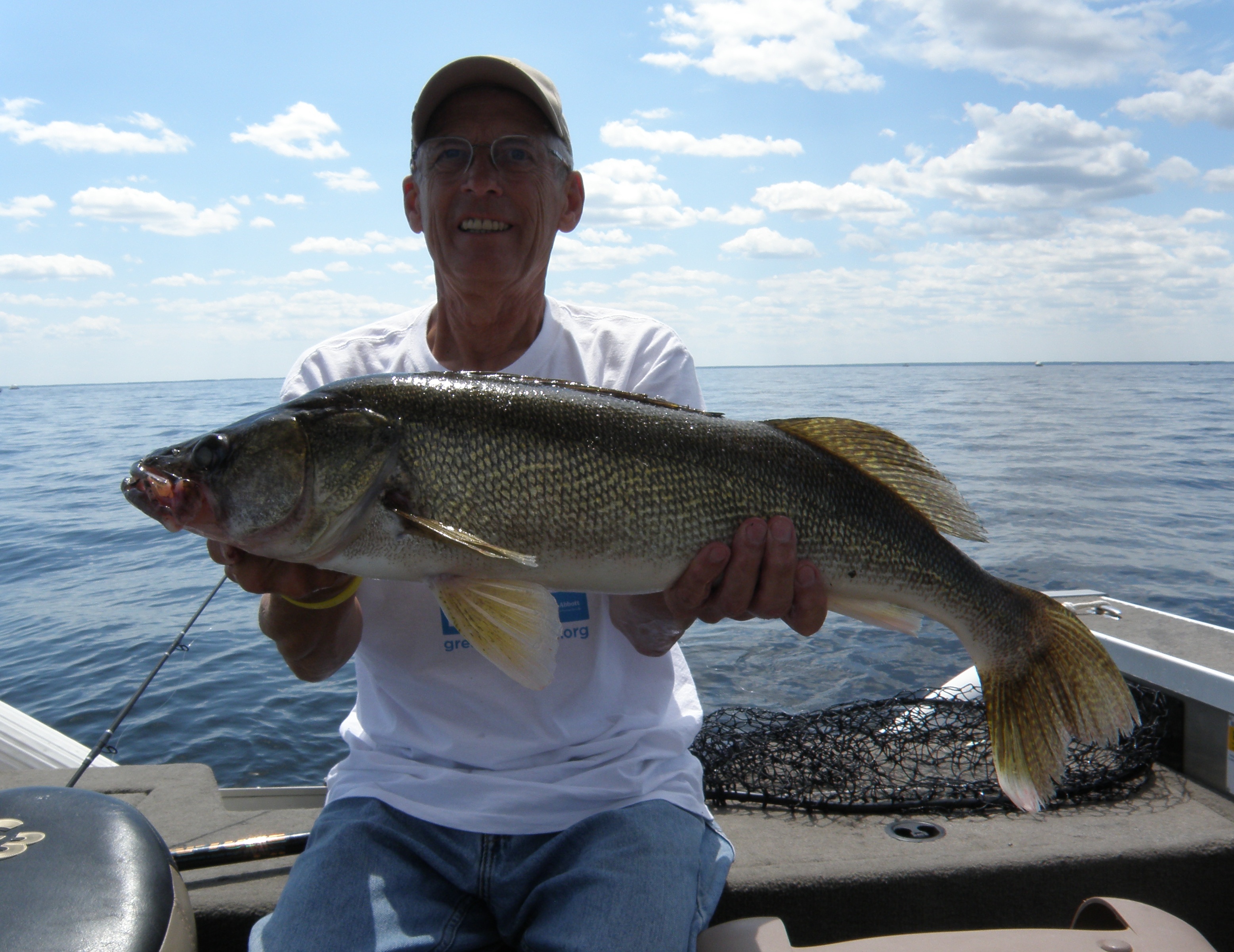 We haven’t fished for a while, but the past couple of days the weather has been great and I told Diane that we need to spend an afternoon at the lake. A friend told us that there is a school of nice fish off the Gap in 30-32 foot of water and that crawlers or downrigging were working well. Diane and I put the boat in at Wheeler’s Point and I had to park in the ditch because the parking lot was full. It’s a ways out to 32 feet where there was a good size fleet of boats, but it was a nice ride. We just drifted using a jig with a crawler. If there had been a little stronger breeze we could have used crawler harnesses. We saw fish being caught here and there and I don’t think those that were using downriggers were doing any better than the bait fishermen. We caught six fish; kept three walleyes; one sauger and released 26″ and 29″ walleyes.