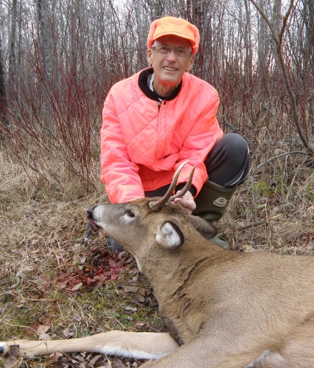 Diane is with Julie for a mother, daughter weekend and Jonathan is here to keep an eye on me and help put a few things away for winter. We didn’t hunt the weekend, just enjoyed socializing at the cabin along with some good meals. Terry got a doe early Saturday afternoon walking out to the stand and there is quite a story that goes with that, on how a big buck ended up being a doe. Gerry got a nice buck later Saturday afternoon. Wally and Nolan got blood on a nice buck Sunday morning and unfortunately it quit bleeding and with no snow there was no way to follow it. Dave, a new member of the group, kept sitting in the wrong stand and didn’t see anything until Sunday evening and then decided it was too small to take. On Monday, I asked Jonathan if he would like to go sit in the stand with me for an hour or so. I told him that it would be nice to have a spike buck come along, but anything else, we’d just try to take pictures. We were in no hurry to get going and got to the stand about 8:00 and just before the hour or so was up, here he comes. Now its pictures for me the rest of the season.
