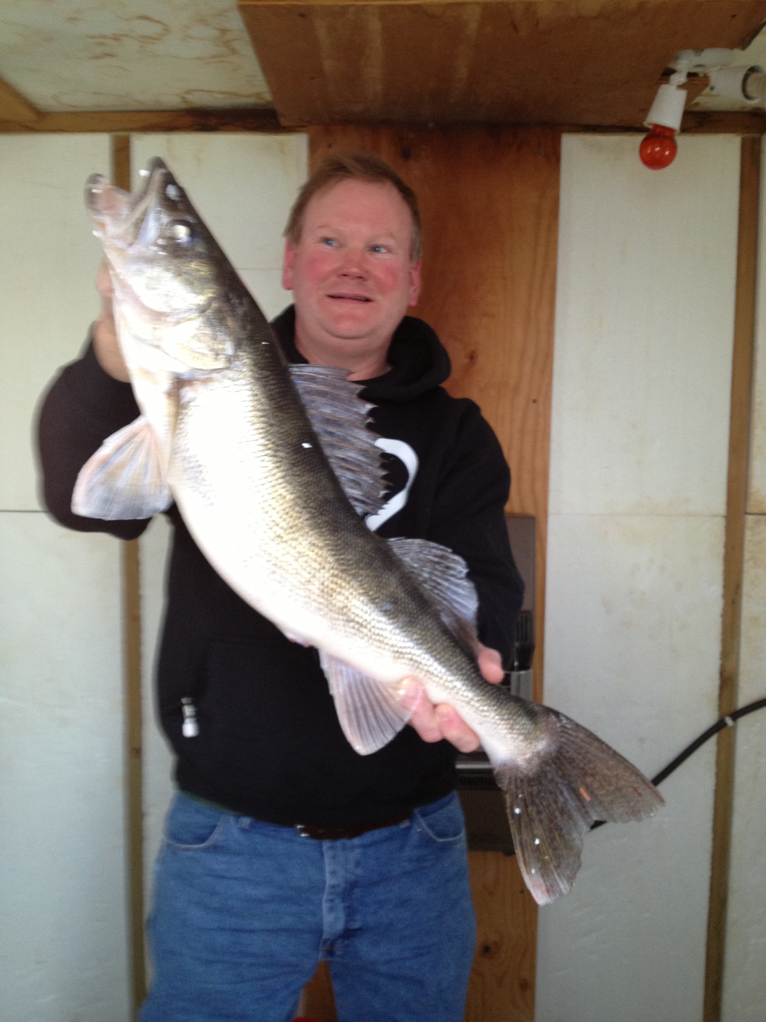 Thursday evening, Jeff, one of the Bosch Boys, caught a 28-1/2″ walleye and took over first place for the winter test big fish contest. He gave some thought to putting it on the wall, but decided that there may be another one sometime and released it. There are three guys left here to get a bigger one and they only have about a week to get it done.