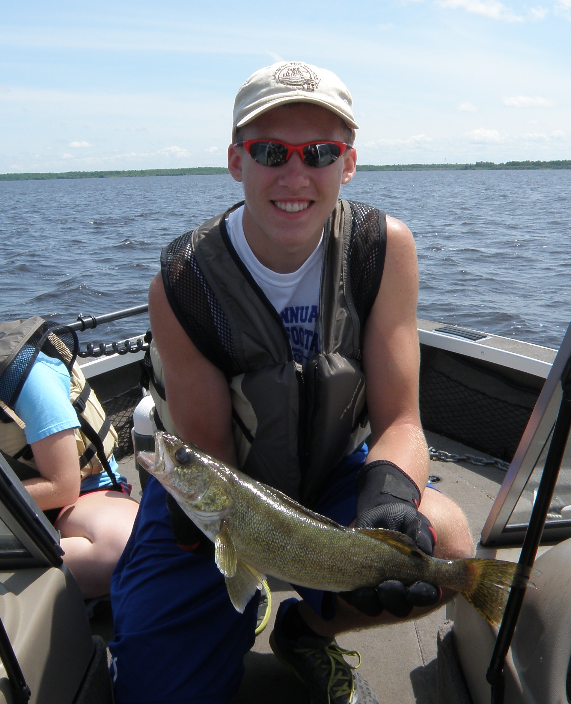 There has been some awful thunderstorms rolling through the midwest the past few days, but we’ve had nice weather. Take a Kid Fishing was Wednesday and it was a beautiful day. While fishing hasn’t been great; it’s been good. There are still some fish in close and most boats caught fish. We have fished the past two days and it was nice on the lake. Thursday we fished the afternoon on the outside of Pine Island, drifting in 15′-17′ with frozen shiners. We kept 9 saugers, 4 nice walleyes and released a number of small ones plus a 23″ slot fish. Friday wasn’t as good and we didn’t see a lot of fish being caught. We kept 2 saugers, 4 nice walleyes and released several little ones. The three of them are having a contest; some formula of total inches of fish caught and kept. After two days, Matt is in the lead. We’ve had two good fish frys and are having a good time.