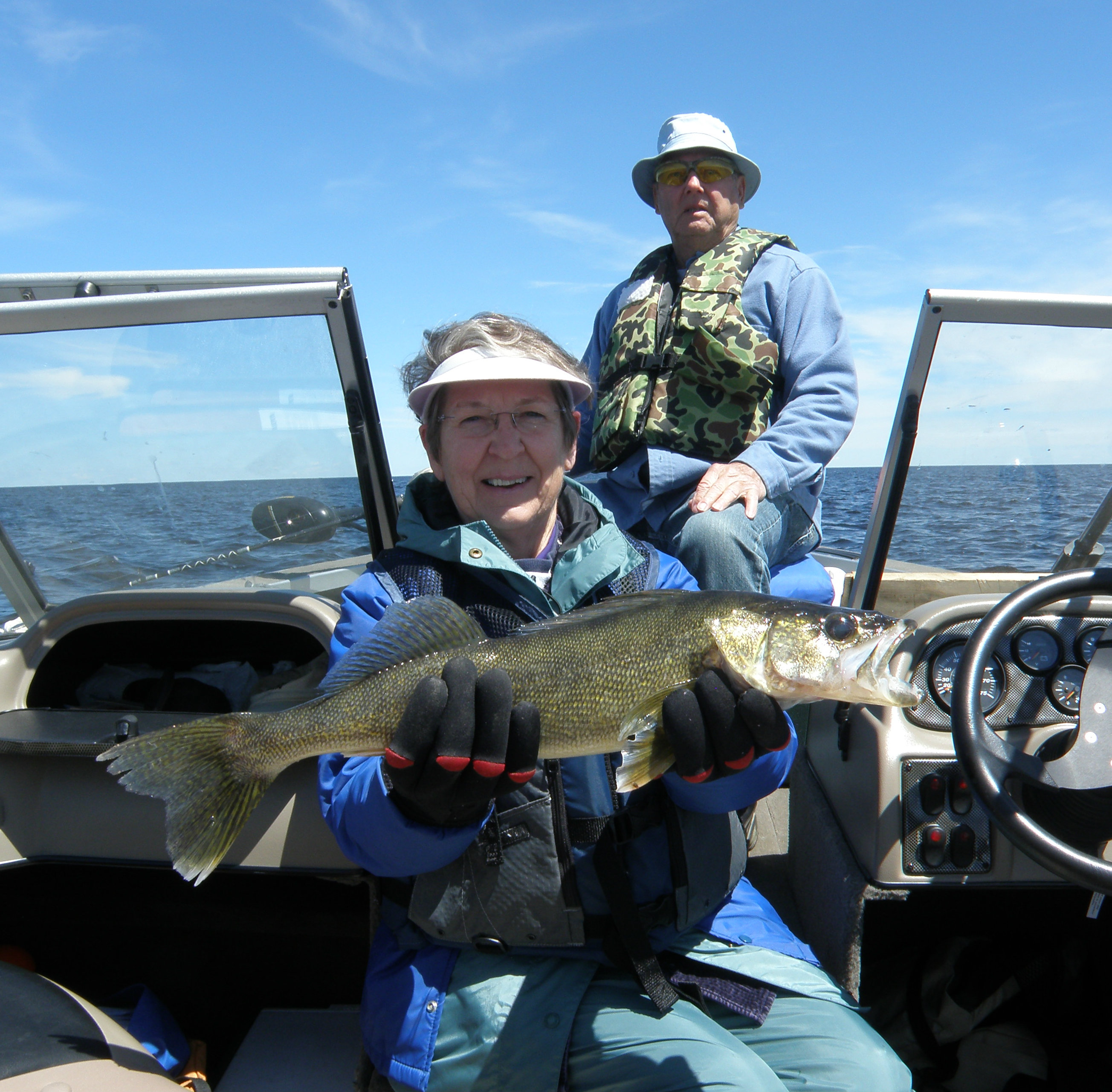 Uncle Noie and Janice were here for a visit and a few days of fishing. we fished out of Zippel Bay State Park and water conditions were good. On Wednesday, the nicest of the three days we fished, fishing was not so good. We spent 3-4 hours trying a number of different things and different places and kept two small walleyes. The only excitement was a 5-6 lbs Burbot that Janice caught. Thursday was rain and drizzle most of the day. We fished for two hours late afternoon and kept nine walleyes and released a 21″ that Janice caught. Friday was a little breezy and we fished for about four hours, drifting in water from 15-22 feet. That’s what most boats were doing; some were anchored up. We kept five walleyes and three saugers; released three slot fish; Diane had a 24″. There was not a lot of catching going on that we could see and one would expect better fishing at this time of the year. We had enough for a good fish fry and a limit for them to take home. If you’ve read this far you would have concluded that we were bested by the gals.