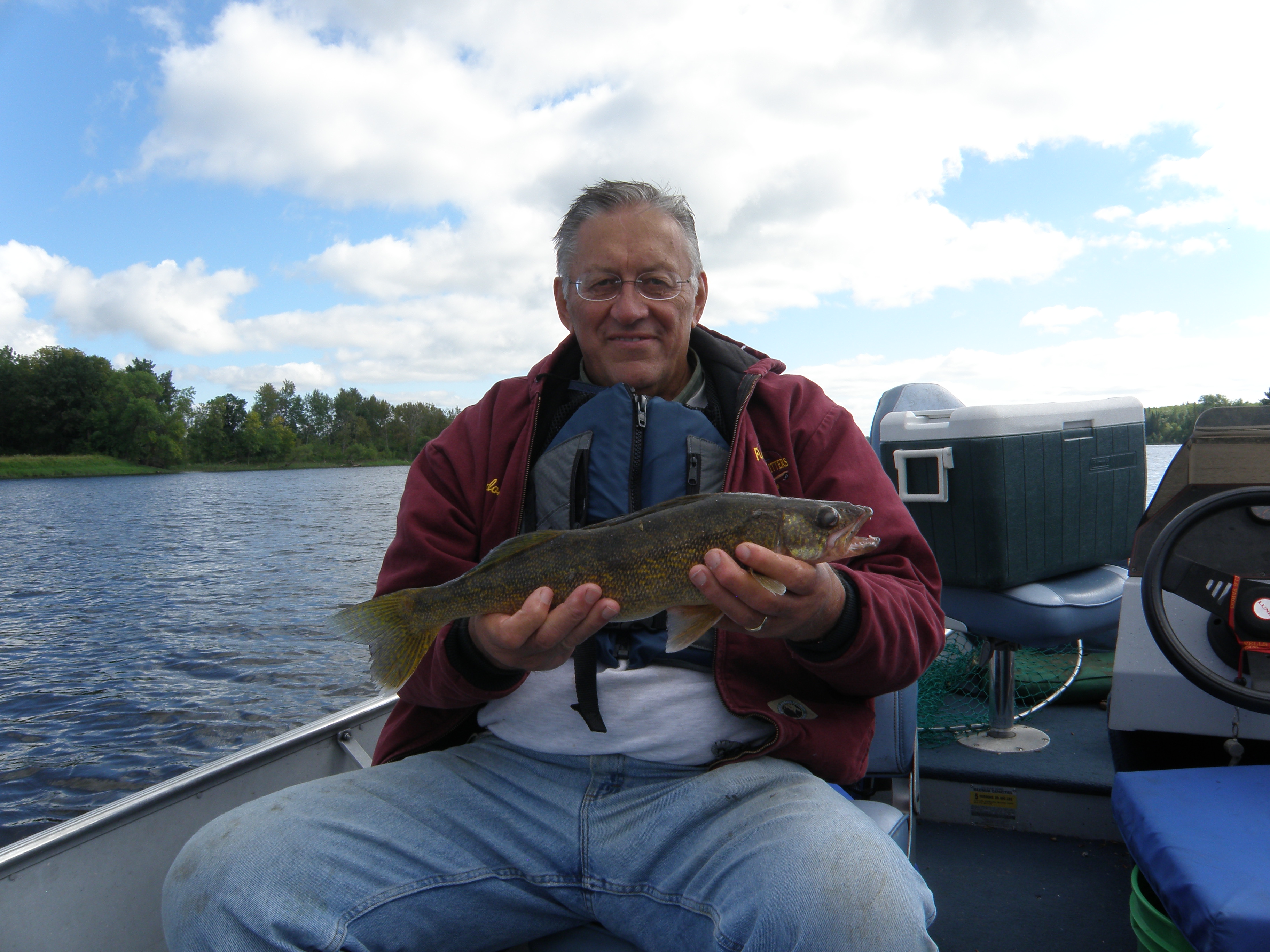 Karen, Gordon and Grandma Ida are here for the Labor Day weekend. Weather wise, Saturday may have been the best of the weekend and Gordon and I spent a good portion of it on the river. We were targeting sturgeon and I was hoping that Gordon would tie into a good one, but that wasn’t meant to be; we never caught any. We did, however, catch quite a few walleyes; brought home a limit and released a 20″ and 24″ and several little ones. Gordon has some really good walleye fishing on Lake Sakakawea in North Dakota, but he indicated he was happy catching walleyes here. Nick and Danielle were close by in the afternoon and Nick caught a nice sturgeon; one of three we saw caught. If the weather permits, we’ll try again before they have to go home.