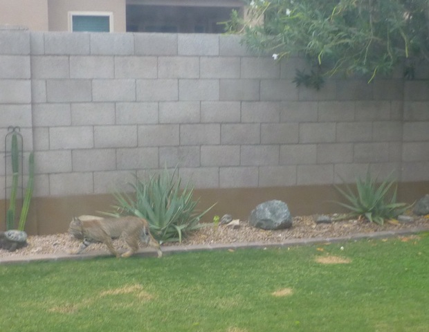 I thought it was a little special when I saw a young bobcat feeding on a road killed deer a couple of years ago, but was clearly outdone when Jodi sent a picture of one in her back yard. Here they are in a nice suburban community in a city of six million people and they get this wildlife that we don’t see much of; coyotes, quail and now a bobcat. Won’t mention some of the other critters.