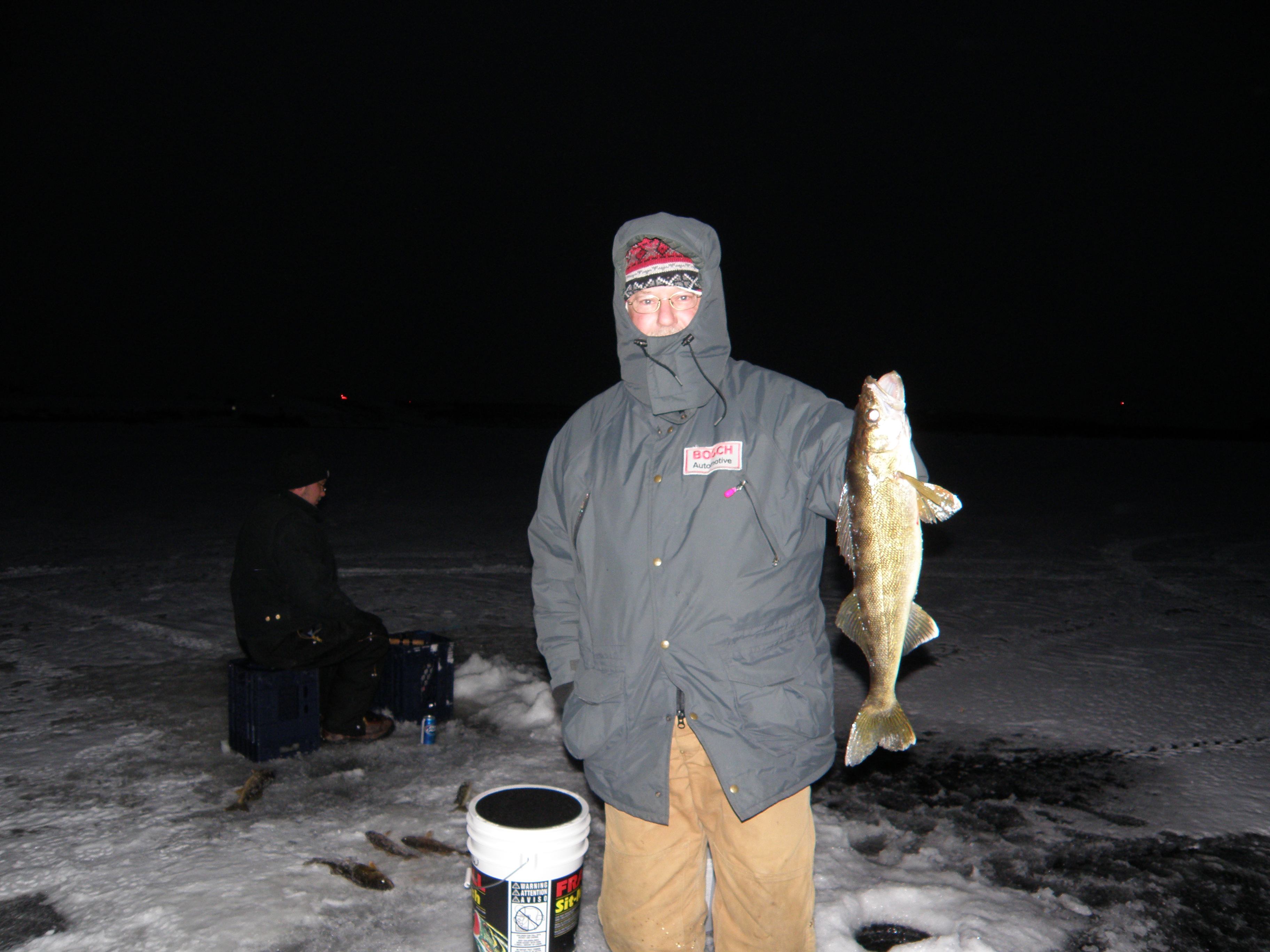 It’s winter and the Bosch Boys are here for another winter test season. The other evening I met Earl and Steve by the airport for an hour or so of fishing before dark. The three of us caught four walleyes; two of which were 22″ & 24″ slot fish and three small saugers. That’s typical of this winters catch on the river.