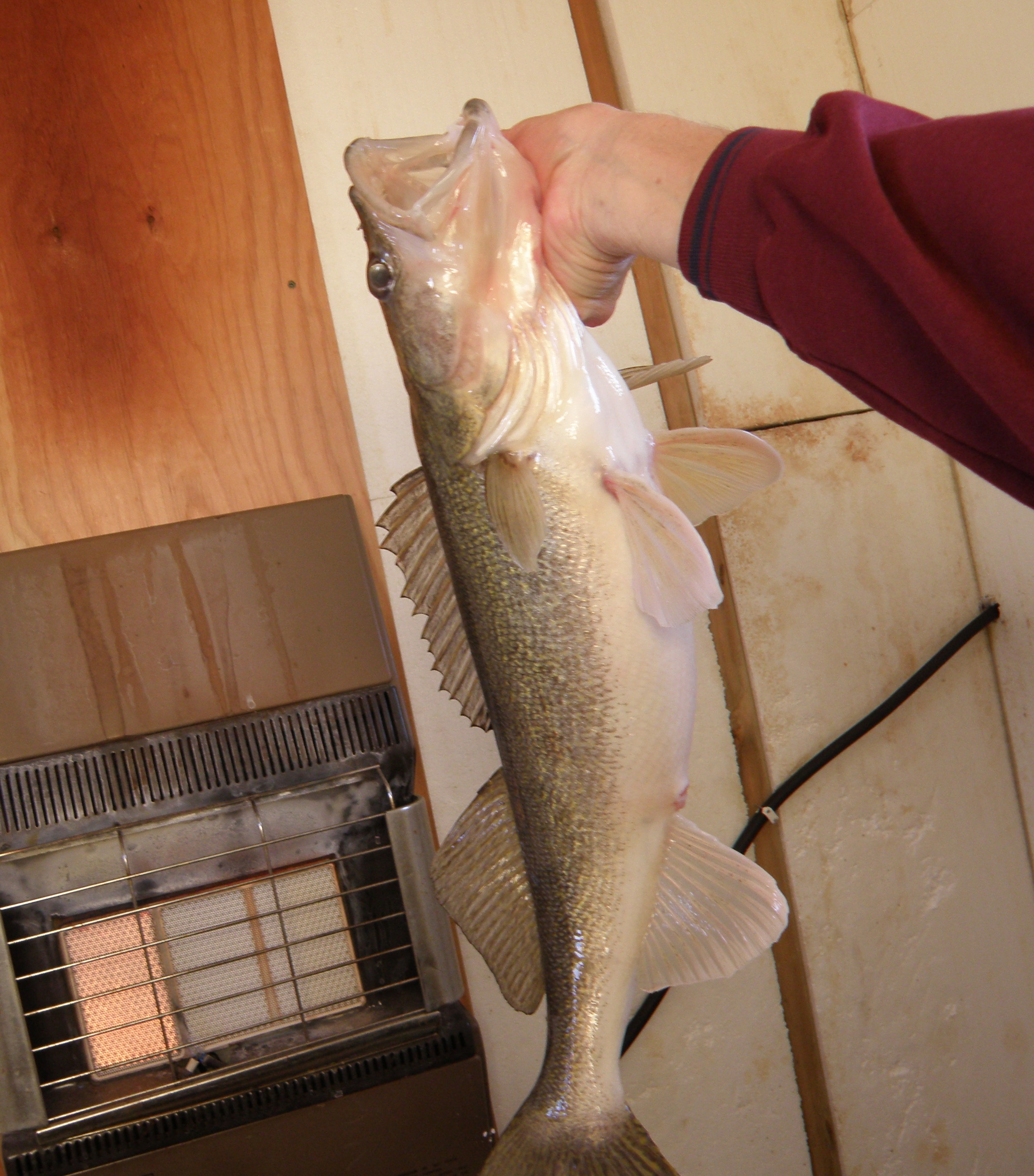 The weather; one nice day and then several days of wind, rain, cold and even snow. Over two inches of rain during the past week has raised the water level in the river a foot or more. The current is strong and it takes about a one ounce jig to stay near the bottom . There is debris coming down the river and the water is cloudy, but not too bad, considering.